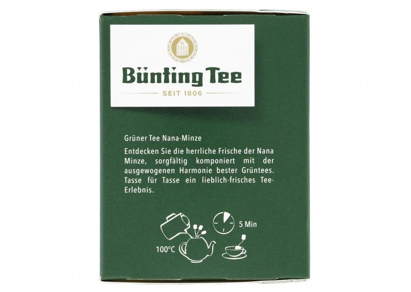 Natürlich aromatisierte Grünteemischung mit Minzgeschmack. Aus Ostfrieslands ältestem Teehandelshaus.