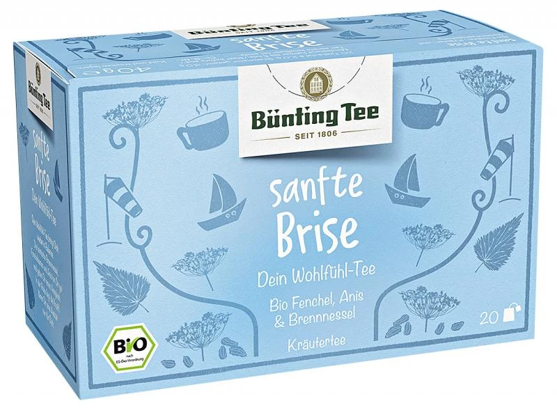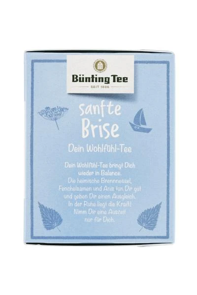 Sanfte Brise. Dein Wohlfühl-Tee bringt Dich wieder in Balance. Die heimische Brennessel, Fenchelsamen und Anis tun Dir gut und geben Dir einen Ausgleich. In der Ruhe liegt die Kraft! Nimm Dir eine Auszeit nur für Dich.