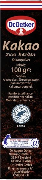 Dr. Oetker Kakao zum Backen eignet sich besonders für Ihre Backrezepte. Das vollmundige Aroma und die rötlich dunkle Farbe garantieren ein hervorragendes Backergebnis. Ideal auch für die Zubereitung von köstlichen Desserts und Trinkschokolade.