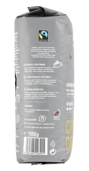Das Geheimnis von Crema Grande? Arabica-Bohnen von ausgewählten Kooperativen im brasilianischen Minas Gerais kombiniert mit kräftigen Robusta-Bohnen. Ein aromatischer Kaffee mit Anklängen von Schokolade und goldbrauner Crema. Natürlich 100% Fairtrade-zertifiziert.