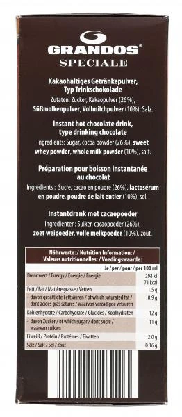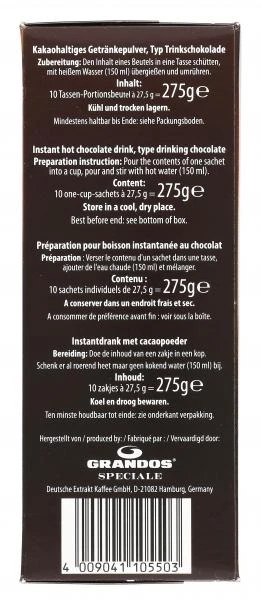 Kakaohaltiges Getränkepulver, Typ Trinkschokolade. 10 Tassen-Portionsbeutel.