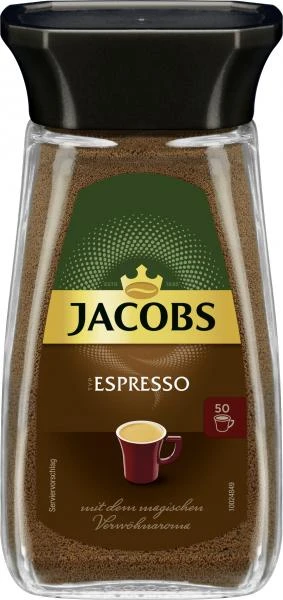 Genieße mit dem löslichen Kaffee Jacobs Espresso italienische Lebensfreude pur! Der Löskaffee Jacobs Espresso ist im Handumdrehen zubereitet: Einfach mit heißem Wasser aufgießen und schon ist der Kaffee genussbereit! Jacobs Espresso ist ideal für jede Gelegenheit: Egal ob auf der Arbeit, für unterwegs oder im Urlaub. Genieße mit jedem Schluck Jacobs Espresso das magische Verwöhnaroma!