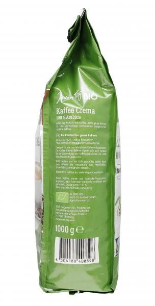Jeden Tag Bio Fairtrade Kaffee Crema ganze Bohnen ist eine vollmundige Komposition ausgesuchter Arabica-Kaffees. Geeignet für alle handelsüblichen Kaffeevollautomaten. Die Kaffee Crema Bohnen eignen sich auch bestens für die Zubereitung von Kaffeespezialitäten wie Latte Macchiato und Cappuccino.