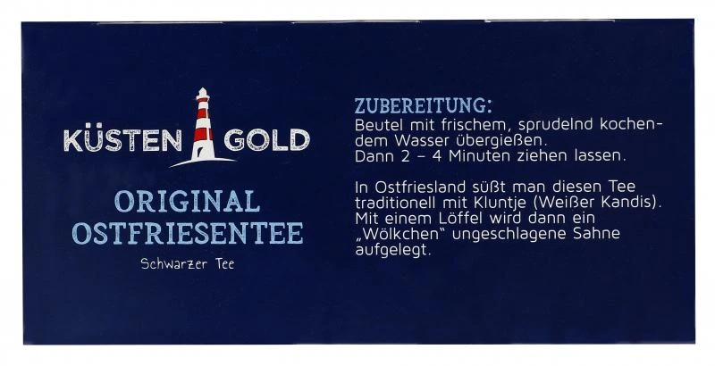 In Ostfriesland süßt man diesen Tee traditionell mit Kluntje (Weißer Kandis). Mit einem Löffel wird dann ein „Wölkchen“ ungeschlagene Sahne aufgelegt.