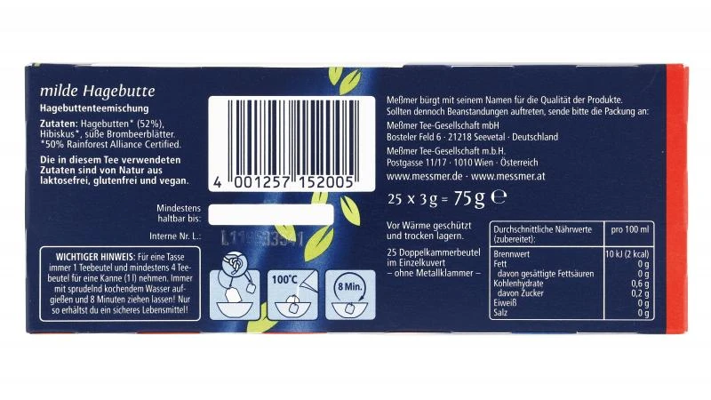 In diesem Meßmer Früchtetee haben die Tee-Experten den milden Geschmack der Hagebutten mit dem erfrischenden Charakter des Hibiskus harmonisch vereint und mit süßen Brombeerblättern abgerundet – für ein fruchtigmildes Genusserlebnis.