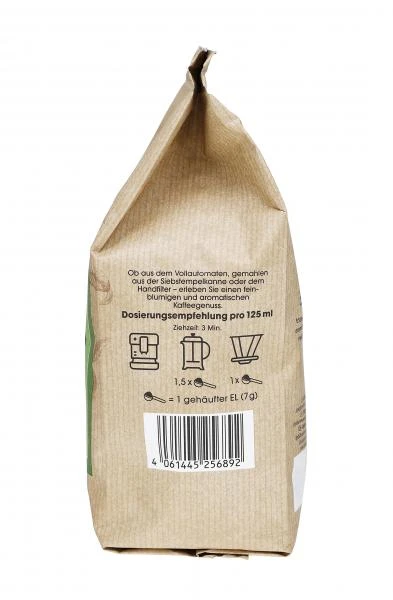 Feinblumiger Genuss aus dem Ursprungsland des Kaffees. Seine Wurzeln hat dieser Bio Kaffee im äthiopischen Hochland, der Heimat besonders hochwertiger Kaffeekirschen. Hier bauen die Kleinfarmer den Kaffee noch immer zu 100% ökologisch und mit traditionellen Methoden an. Handgepflückt, sorgsam gewaschen und sonnengetrocknet reisen die erlesenen Arabica-Kaffeebohnen in die Hamburger Speicherstadt. In der Rösterei werden sie anschließend schonend trommelgeröstet.
